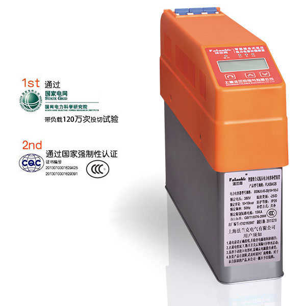 FLK系列智能式低压电力电容器是0.4KV低压电网高效节能﹑降低线损﹑提高功率因数和电能质量的新一代无功补偿设备。它由智能测控单元,晶闸管复合开关电路,线路保护单元,两台(△型)或一台(Y型)低压电力电容器构成。替代常规由智能控制器﹑熔丝﹑复合开关或机械式接触器﹑热继电器﹑低压电力电容器﹑指示灯等散件在柜内和柜面由导线连接而组成的自动无功补偿装置.改变了传统无功补偿装置体积庞大和笨重的结构模式,从而使新一代低压无功补偿设备具有补偿效果更好,体积更小,功耗更低,价格更廉,节约成本更多,使用更加灵活,维护更加方便,使用寿命更长,可靠性更高的特点,适应了现代电网对无功补偿的更高要求。